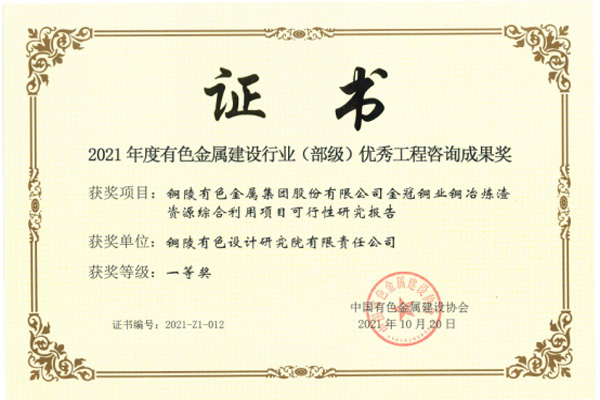 銅陵有色金屬集團公司銅冶煉爐渣資源綜合利用項目